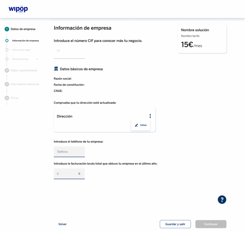 Si, por el contrario, no existen más participantes pero no eres el administrador de tu empresa, te solicitaremos introducir los datos de este.