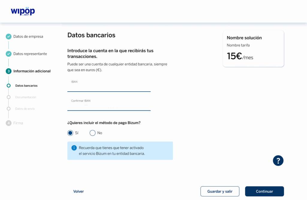 Si el producto que quieres contratar es Pasarela de pago, Link de pago o el pack Wipöp GO; te ofreceremos la posibilidad de incluir Bizum como método de pago.